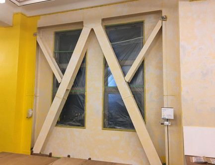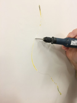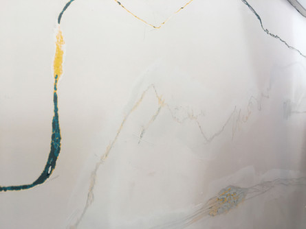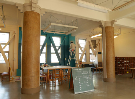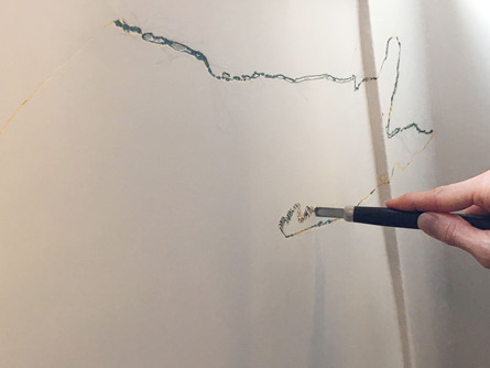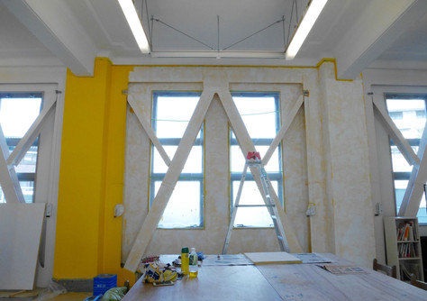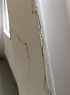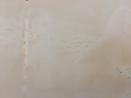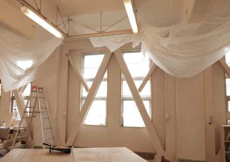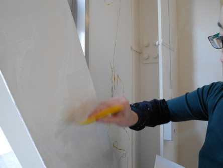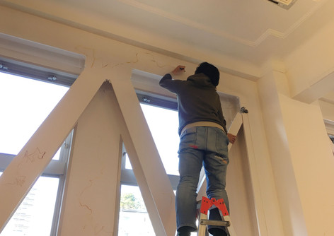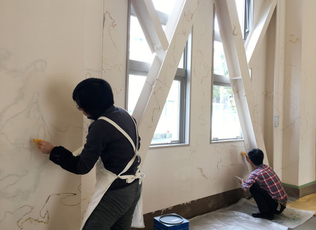20回以上の塗り重ねの後、最後に白い壁色が塗られ、一見もとの状態へ。ここまでの作業は作家が行いました。
